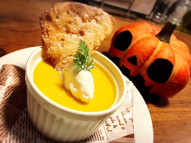 ☆☆ 季節のデザート!! ☆☆ こんにちわ!! 練馬熟成肉バル カウぼーずです! 日に日に寒くなってきましたが皆さんいかがお過ごしでしょうか?? 早いもので10月も月末が近づいてきましたね~! 10月の終わりと言えばハロウィン!! ハロウィンと言えばカボチャ!! なので今回のデザートは 「濃厚カボチャプリン」 南瓜の旨みを凝縮しました!! かなり濃厚な味わいです(^^ プリンと自家製テュイルを一緒に召し上がれ!! だんだん寒くなってきましたがカウぼーずは元気に営業中!!お待ちしてます!! < 前のお知らせ 次のお知らせ >