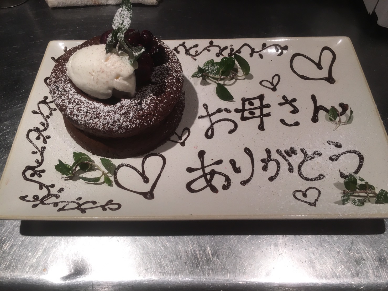☆☆母の日☆☆ こんにちは!!! 肉賊カウぼーずです!!! 皆さんロングロングGWはいかがお過ごしでしたか?? 私は・・・ ずっとお店で肉を焼いてました!!!! ・・ハイ 最終日は母の日という事でメッセージプレート書かせて頂きました!!! お母さん♥ありがとう♥♥ 喜んで頂けたようで何よりです!!! ♥サンキューマッマ♥ 誕生日や記念日などメッセージプレートをご用意致しますのでお気軽にご連絡くださいませ!!! 以上、肉賊カウぼーずでした!!! < 前のお知らせ 次のお知らせ >