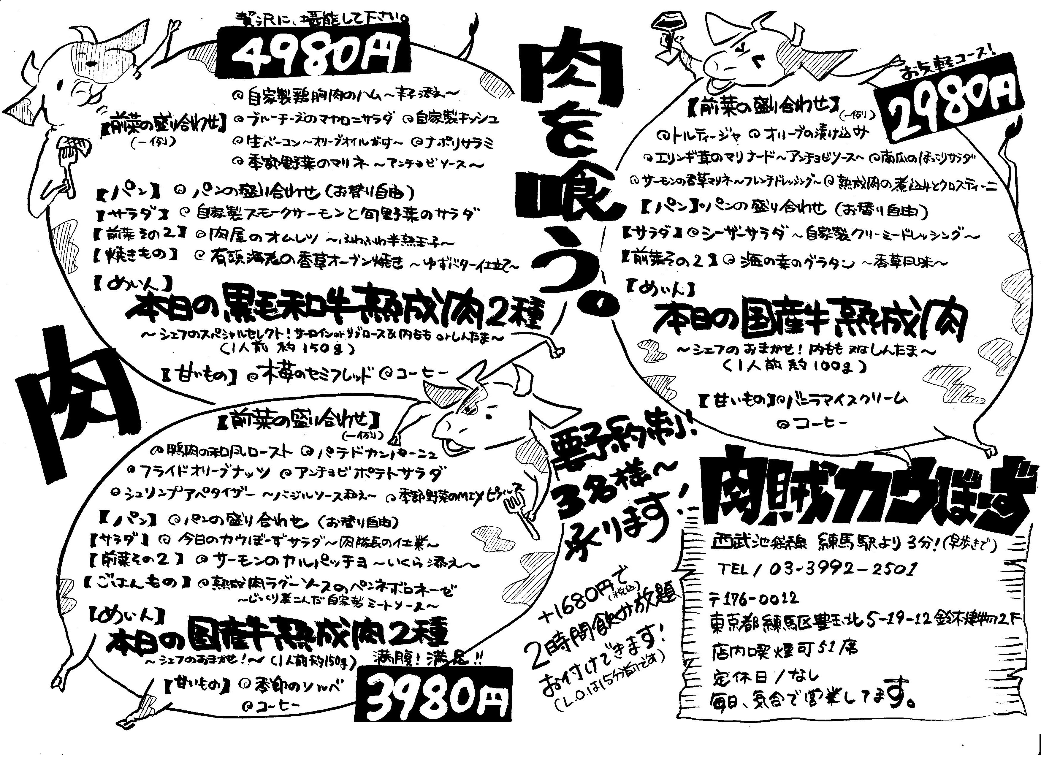 こんにちわ!! 練馬 熟成肉バル カウぼーずです!