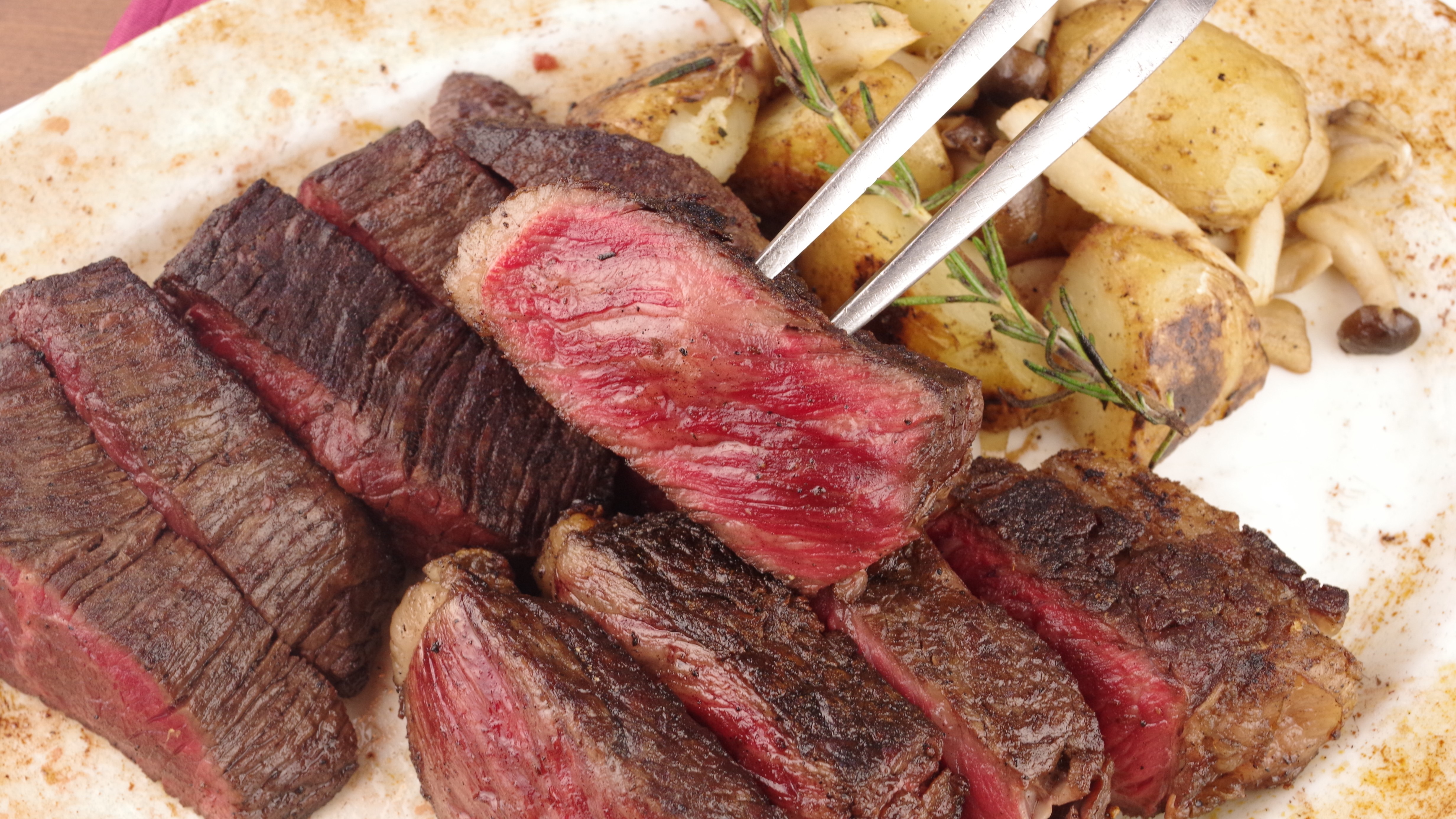 | ステーキ用に厳選した霜降り肉・赤身の塊肉を炭火の高火力で表面をカリッと、中はしっとりぷりっぷりに焼き上げます。
